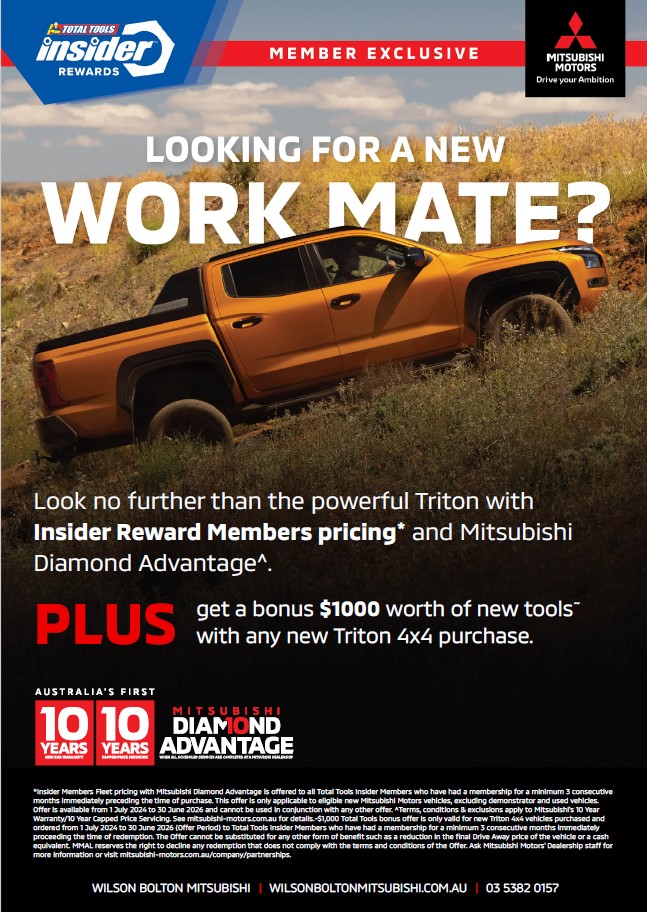 Wilson Bolton Mitsubishi are excited to promote the Total Tools Insider Program to our Wimmera customer base alongside Total Tools Horsham.